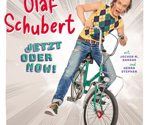 Olaf Schubert und seine Freunde – Jetzt oder now! Dass ein Gedankengigant wie Olaf Schubert auf alle Fragen eine Antwort weiß, gilt als Grundschulwissen. Doch nun macht Schubert den nächsten großen Schritt. Er stellt Fragen. Wichtige Fragen, wie eben jene – „Jetzt oder now?“. Also eine Frage, die selbst Fragen stellt. Dass sich hierbei der Schwanz ins Gesicht beißt, ist des Künstlers ureigenstes Anliegen. Wie nebenbei schuf er mit dieser Frage einen Programmtitel mit internationalem Sound. Daran erkennen wir, Schubert ist mittlerweile multilingual – wenn nicht gar zweisprachig. Ganz oben angekommen auf der Spitze des Eisbergs der Globalisierung, steht ihm nun alles offen. Die ganze Welt. Aber trotzdem bleibt uns der Ausnahmekünstler treu, denn er gibt auch Konzerte in Deutschland, nicht viele, aber immerhin ca. 745. Das zeigt, er hat das geschafft, was nur Wenigen gelingt, trotz des gigantischen Erfolgs bodenständig zu bleiben. Ein Olaf zum Anfassen möchte er sein.