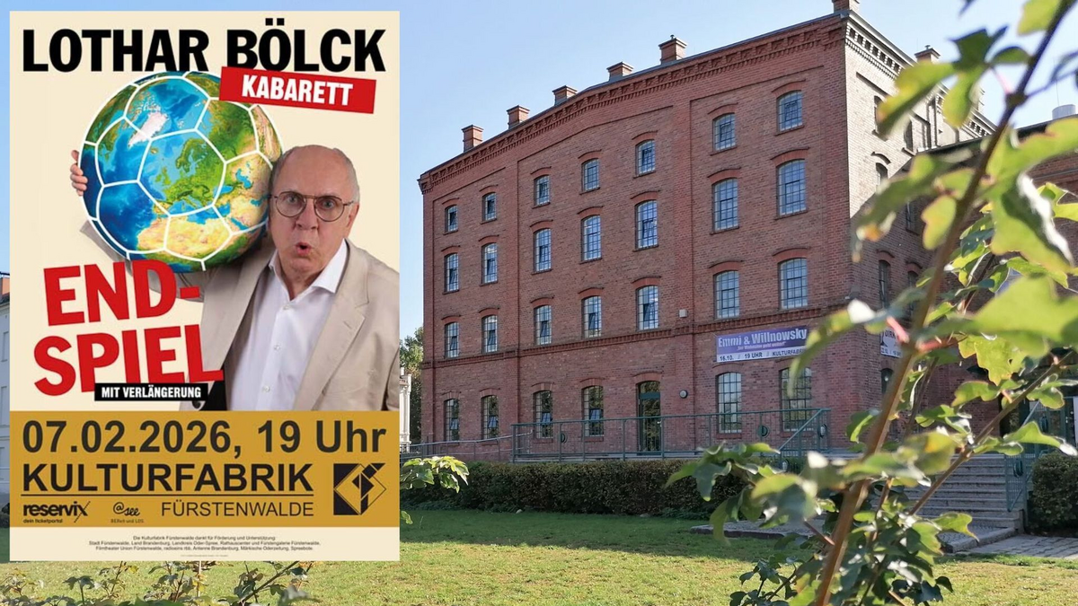 Am 7. Februar 2026 um 19:00 Uhr präsentiert die Kulturfabrik Fürstenwalde das neue Kabarettprogramm von Lothar Bölck: „Endspiel mit Verlängerung“. Der vielfach ausgezeichnete Satiriker denkt die Dinge vom Ende her und seziert mit scharfem Witz die Spielregeln unserer Gesellschaft. Wer steht im Abseits, obwohl er mittendrin ist? Wie spielt man weiter, wenn man gar nicht mehr dabei ist? Bölck verwandelt scheinbar Belangloses in bissige Pointen und regt zum Nachdenken an. Sein Programm ist ein kabarettistisches Verlängerungswunder – kein Abgesang, sondern ein scharfzüngiger Kommentar zum Zustand der Welt. Mit Tempo, Tabubruch und sprachlicher Raffinesse bringt er das Publikum zum Lachen und Staunen.
