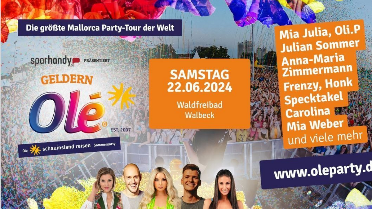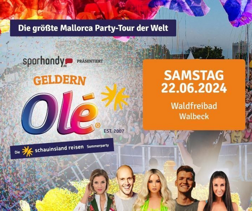 Die Geldern Olé-Party bringt authentisches Mallorca-Flair an den Niederrhein. Ein vielfältiges Line-up mit bekannten Künstler:innen sorgt für ein unvergessliches Open-Air-Erlebnis.