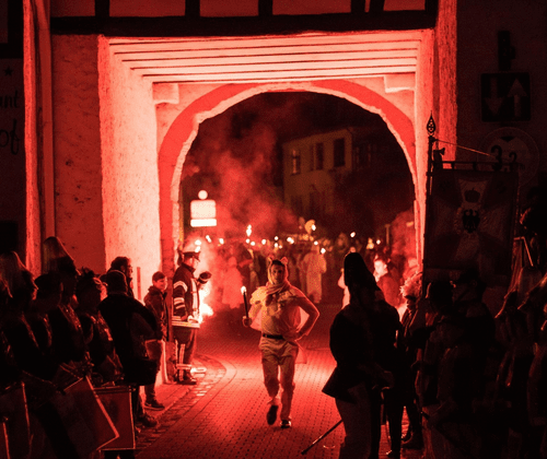 Der Blankenheimer Geisterzug ist ein traditionsreiches Karnevalsereignis, das seit über 400 Jahren jährlich am Karnevalssamstag im historischen Ortskern von Blankenheim stattfindet. Teilnehmende kleiden sich in weiße Bettlaken, formen mit Kordeln zwei charakteristische "Ohren" und tragen Pechfackeln. In dieser Geistergestalt ziehen sie durch die verdunkelten Gassen der Stadt, um symbolisch die Winterdämonen zu vertreiben. Angeführt wird der Zug von den "Jecke Böhnche", gefolgt vom Obergeist, der als einziger Flügel trägt und hoch zu Ross reitet. Begleitet wird der Umzug vom traditionellen Karnevalsmarsch "Juh-Jah Kribbel en d'r Botz". Nach dem Zug versammeln sich die Geister zur traditionellen Geisterparty in der Weiherhalle. ([blankenheim.de](https://www.blankenheim.de/de/freizeit/geisterzug?utm source=openai))