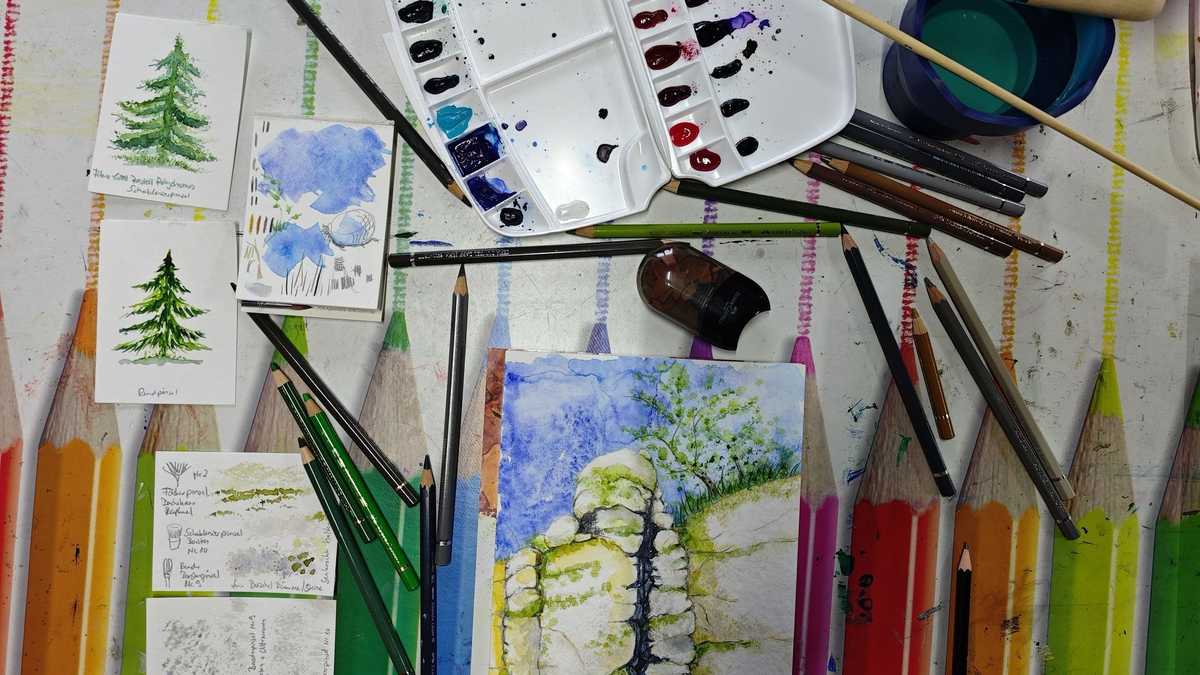 Wir entdecken malerisch die erste Malerwegs Etappe. Wir setzen zeichnerisch die faszinierende Landschaft entlang der Wesenitz um. Mit Aquarell fangen wir die spannenden Töne der Felsen, Bäume, Wasser und Himmel ein. Der Kurs ist für Anfänger und Fortgeschrittene geeignet, aber auch Familien. Kleine Gruppe,  maximal 6 Personen. Start und Ende am Atelier. Festes Schuhwerk erforderlich. Buchen unter 0157 58475562