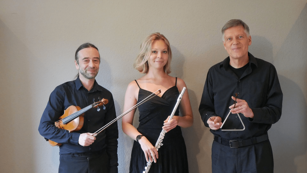 Das Trio Flauto Arco Plus präsentiert ein Kammerkonzert, das die Vielfalt der Kammermusik in den Mittelpunkt stellt. Durch die Kombination von Flöte, Violine und einem facettenreichen Schlaginstrumentarium entsteht ein einzigartiger musikalischer Dialog. Das Repertoire umfasst Werke von Bach und Telemann, Mozarts virtuose Duette sowie impressionistische Kompositionen von Debussy. Besonders hervorzuheben sind die Stücke von Günther Wiesemann, die mit meditativer Tiefe und rhythmischer Energie neue Klangräume eröffnen. Gemeinsam mit Mariia Kostina (Flöte) und Benjamin Nachbar (Violine) bildet das Ensemble eine Brücke zwischen Generationen und Kulturen, wodurch die Musik frisch, lebendig und ausdrucksstark erklingt. Ein Abend, der die Faszination der Kammermusik in all ihren Facetten erlebbar macht.