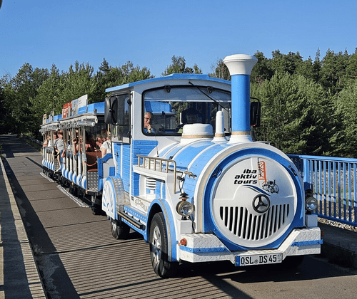 Diese Tour mit der Seeschlange ist der ideale Einstieg um das Lausitzer Seenland kennenzulernen. Wir bringen Sie zu den Highlights am Ufer des Geierswalder Sees. Ein Stopp an der Landmarke "Rostiger Nagel" (Aussichtsturm) bietet Ihnen die Möglichkeit für eine eindrucksvolle Aussicht mit Blick auf das Seenland "von oben". Start ab 10:00 Uhr am Eingang des Familienparks. Wir bitten um vorherige Reservierung. Tickets im Radstützpunkt im Familienpark erhältlich. Weitere Informationen: Buchung und ausfühliche Beschreibung Website des Veranstalters