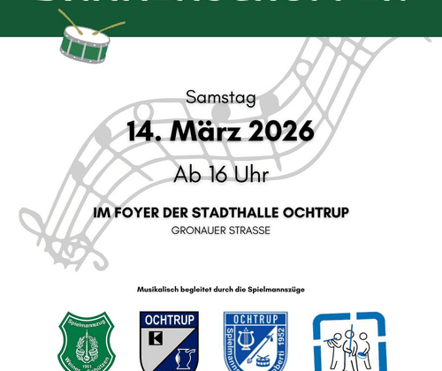 Die renommierte Musikdarbietung der Spielmannszüge "Weiner Schützen", "Nachtigallen der Kolpingfamilie Ochtrup", "Lamberti" und "Horstmar" verspricht einen gemeinsamen musikalischen Frühschoppen in Ochtrup.