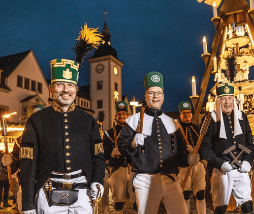 Bergmännische Traditionen werden auch zur Bergparade am zweiten Adventswochenende in Freiberg lebendig. Im Fackelschein marschieren Berg- und Hüttenleute majestätisch in ihren prächtigen Uniformen durch die historische Altstadt zur Aufwartung auf den Schloßplatz (17.15 Uhr). Musikalisch begleitet werden sie vom Bergmusikkorps Saxonia Freiberg. Über die Burgstraße geht es weiter zum Obermarkt (18 Uhr) und anschließend zum Berggottesdienst in die Petrikirche (18.30 Uhr). Das Jugendblasorchester Bernsdorf spielt gegen 19 Uhr bergmännische Blasmusik auf dem Christmarkt. Die Route, besten Plätze zum Zuschauen und Sicherheitshinweise sind online in einer Karte dargestellt. Der Freiberger Christmarkt gilt als einer der schönsten Weihnachtsmärkte Deutschlands. Hier werden bis 22. Dezember erzgebirgische Traditionen lebendig. Tägliches Kinder- und Bühnenprogramm mit Thementagen auch unter der Woche: www.freiberger-christmarkt.de/
