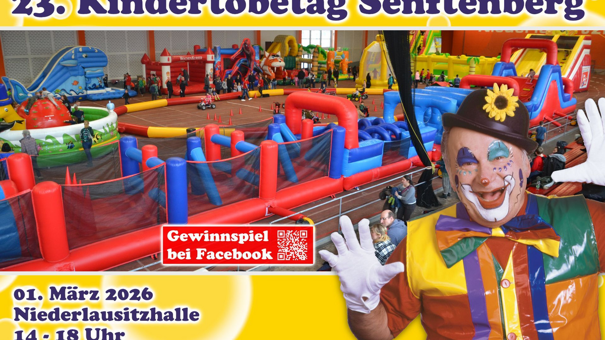 Am Sonntag, den 1.3. können Kinder und Jugendliche wieder ausgiebig toben, spielen, klettern, krabbeln, fahren und vor allem viel Spaß haben.Viele große und kleine Attraktionen lassen kaum Wünsche offen. Auf 2.500 m² Spielplatzfläche werden ca. 30 Attraktionen alle Kinder und Erwachsene begeistern. Eltern und Geschwister, Omas und Opas, alle zusammen können diesen besonderen Erlebnistag in Familie genießen. Mit Kaffee und Kuchen, Limo und Cola, Würstchen und Pommes ist auch die Tobepause organisiert. Atraktionen sind: 8 Meter Ninja Warrior Parcour, Maul-Rutsche, Crazy-Hop Simulator, Riesenrutschen, Elektrofahrzeuge, Kletterstadt, People-Gallows-Bowl, Kletterwand, Wabbelberg, riesiger Kleinkinderspielplatz, Zorb-Ball- Race, Rodeo-Bull Riding, Parkeisenbahn und noch vieles mehr