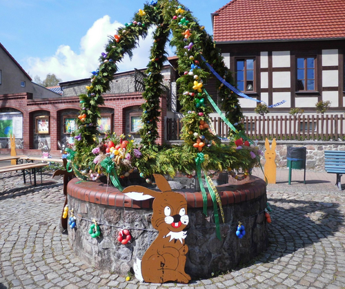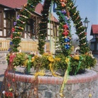 Es ist eine Tradition den öffentlichen Brunnen zu Ostern zu schmücken. Mit den bunten Farben wird der Winter ausgetrieben und der Frühling bricht an.