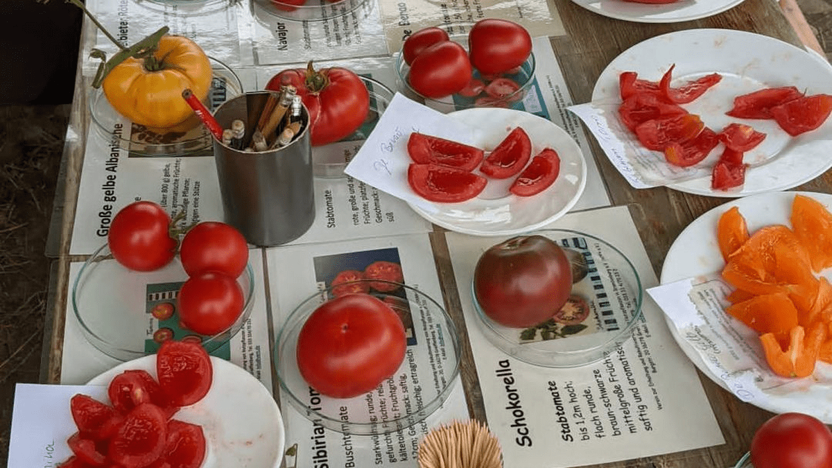 Unser Sommerfest ist verknüpft mit einer Tomatenausstellung und Tomatenverkostung sowie einer Gartenführung.