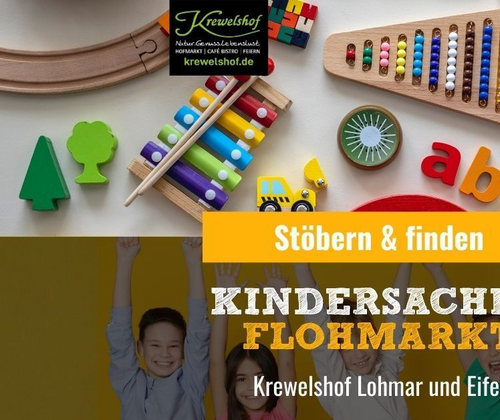 Der Kindersachenflohmarkt auf dem Krewelshof Eifel bietet eine ideale Plattform zum Erwerb und Verkauf von Kinderkleidung, Spielsachen und Büchern. Veranstaltet wird er regelmäßig am letzten Sonntag des Monats; in den Herbstmonaten (September bis November) findet er jedoch am Samstag davor statt. Die Veranstaltung findet bei jedem Wetter statt. Für Verkäufer:innen ist eine vorherige Anmeldung erforderlich. Weitere Informationen sind auf der offiziellen Website des Krewelshof Eifel verfügbar.