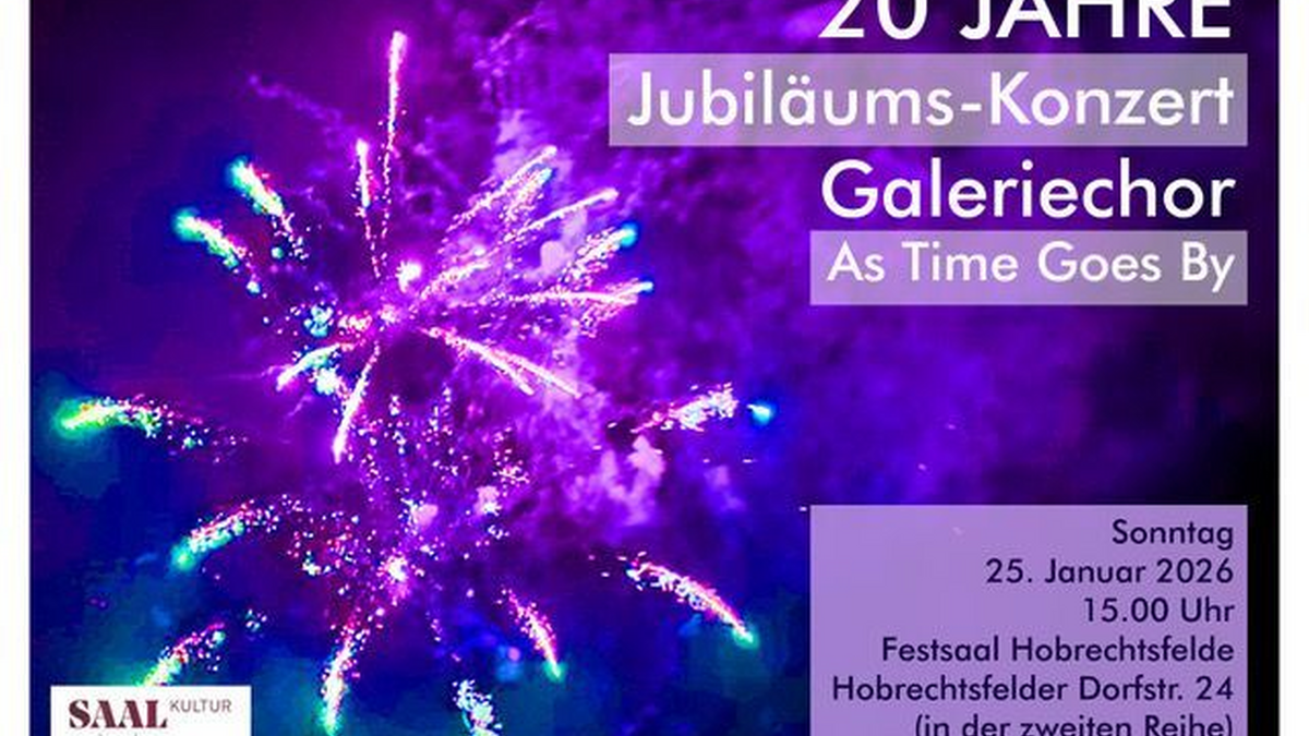 Unter dem Motto „As Time Goes By“ lädt der Galeriechor gemeinsam mit dem SaalKultur e. V. am 25. Januar um 15.00 Uhr zu einem Jubiläumskonzert im Festsaal Hobrechtsfelde. Mit dem Konzert feiert der Chor, der sich im Jahr 2005 in Wilfried Staufenbiels Galerie im Hühnerstall in Schönow gegründet hat, seinen runden Geburtstag. „20 Jahre Galeriechor – das sind unzählige Proben, Konzerte, Chorfahrten, Erinnerungen, Freundschaften und gemeinsame musikalische Erfahrungen und Entdeckungen“, sagt Kerstin Bärmann, Chormitglied der ersten Stunde. „Mit unserem Jubiläumskonzert wollen wir aber nicht nur in die Vergangenheit blicken, sondern vor allem zeigen, woran wir aktuell mit viel Freude und Energie arbeiten. „Vor allem mit neueren, teils eigenen Chor-Arrangements bringen wir den Saal in Hobrechtsfelde zum Klingen, darunter zum Beispiel eine Übersetzung von Charles Trenets ‚La Mer’ oder ‚Heide Ho’, eine augenzwinkernde musikalische Reverenz an die Schönower Heide, wo der Chor in Coronazeiten geprobt hat“, erklärt Nina Rohlfs, Leiterin des Galeriechors. Nachdem Wilfried Staufenbiel viele Jahre den Chor geprägt hatte, übernahm die Hobrechtsfelderin im Herbst 2022 das Ensemble. „Die Chormitglieder freuen sich auf ein Wiedersehen mit Ehemaligen und Wegbegleitern, aber natürlich auch über neue Gesichter im Publikum und womöglich Sängerinnen und Sänger, die 2026 bei uns einsteigen wollen.“ Pünktlich zum Geburtstag ist auch die neugestaltete Website [www.galeriechor.de](http://www.galeriechor.de) an den Start gegangen mit aktuellen Konzertterminen, Kontaktinformationen, einer Liste von Lieblingsliedern und Bildern aus 20 Jahren Galeriechor.