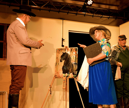 Auf dem traditionsreichen Rennstall Hoppe treffen ehrgeizige Investoren, verlorene Träume, genetische Wahnsinnsvisionen und familiäre Abgründe aufeinander. Im Mittelpunkt: Monsun – ein preisgekrönter Hengst, begehrt und bewundert. Während die einen um Exklusivrechte für Monsuns Nachkommen feilschen, versuchen andere, den Hengst zu retten – oder sich selbst. Zwischen Klonfantasien, Versicherungsbetrug, Stallintrigen und einem alten Wettschein kommt immer mehr ans Licht: eine Affäre, ein Identitätswechsel, eine vergiftete Vergangenheit … und dann ist da noch Günni. Zu einem leckeren Drei-Gänge-Menü in der Gaststätte Ihrer Wahl serviert die TheaterLoge Luckau eine schmackhafte Kriminalkomödie, angesiedelt im Westdeutschland der 80er Jahre. Raten Sie mit und lüften Sie das Geheimnis der Ereignisse im Rennstall. Weitere Informationen: Offizieller Ticketshop der TheaterLoge Luckau Offizielle Webseite der TheaterLoge Luckau