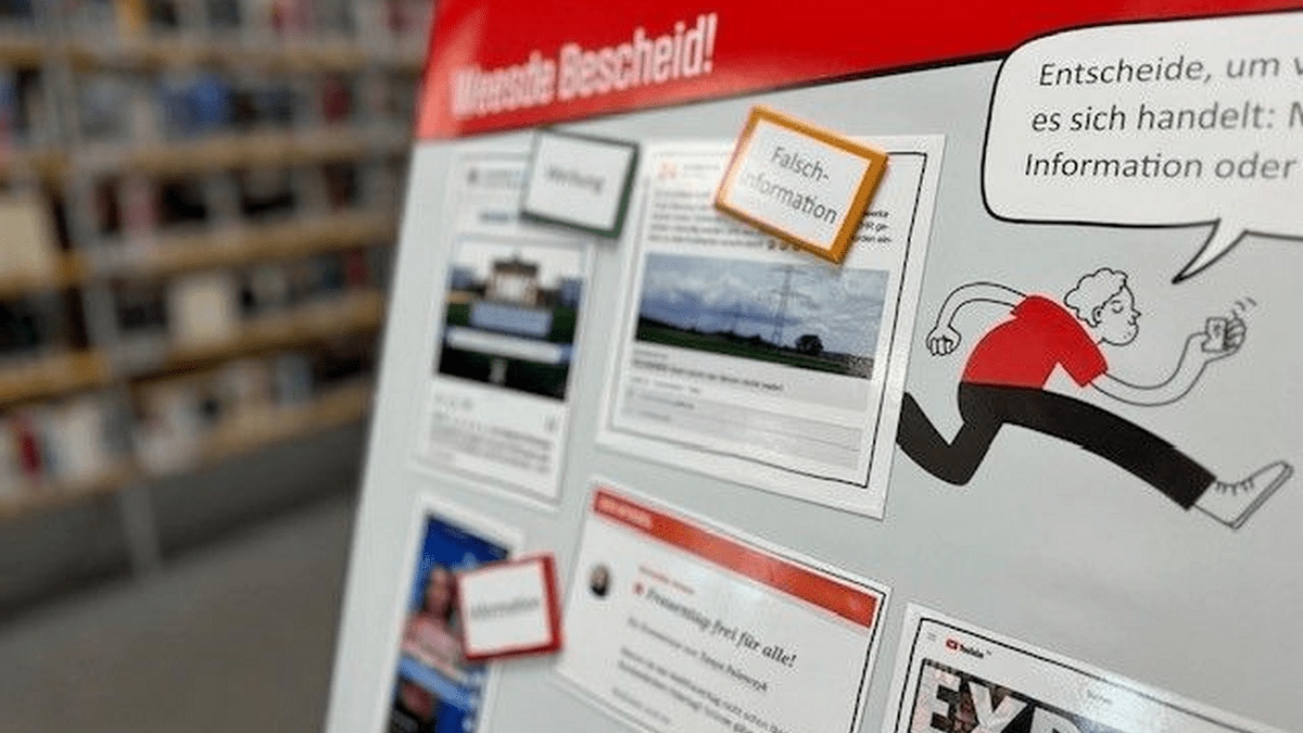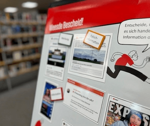 Am Desinfopoint können Interessierte ihr Wissen zu Medien und ihre Kompetenzen zum Umgang mit Falschinformationen ganz analog testen. Interessierte sind eingeladen, an den einzelnen Stationen selbst Hand anzulegen und sich verschiedenen Aufgaben zu stellen. Ob allein oder als kleine Gruppe – jede Station bietet die Möglichkeit, sich mit unterschiedlichen Aspekten der Berliner und Brandenburger oder auch mal der globalen Medienlandschaft auseinanderzusetzen: Lass dich nicht behumpsen! Hier müssen Aussagen auf ihren Wahrheitsgehalt geprüft werden. Weesde Bescheid! Hier gilt es unterschiedliche Beiträge zu unterscheiden – ist es Werbung, Falschinformation, Meinung oder Information? Meene Atzen! Anhand verschiedener Logos müssen Medienangebote und Marken unterschiedlichen Mediengruppen zugeordnet werden.