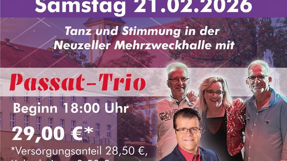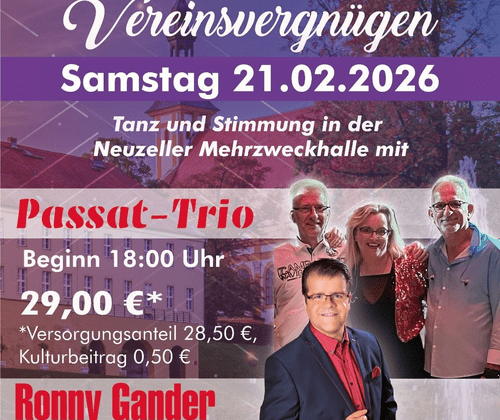 Der Ortsbeirat lädt ein: Tanz und Stimmung in der Neuzeller Mehrzweckhalle mit Passat Trio und Ronny Gander und großer Tombola!