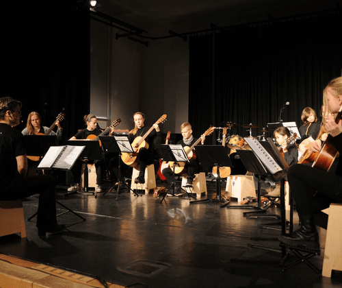Der Fachbereich Zupfinstrumente der Musik und Kunstschule „Johann Abraham Peter Schulz“ lädt am 28. und 29. Januar 2026 zum Auftakt „Saitenzauber 2026“ ein. Unter dem Motto „Auf Zeitreise“ präsentieren unsere Ensembles und Gruppen zum Jahresbeginn ein Programm, das geschickt und vielschichtig musikalische Stimmungen, Epochen und Stile miteinander verbindet. Saitenzauber, das sind die unterschiedlichen Formationen „Music Is Life“, „Better Together“, „Las Cuerdas“ als auch „Los Guitaristas“, sowie die neu besetzte Schülergruppe „Let’s Ride“ und eine junge Nachwuchsband, jedoch ohne Namen. Unter der Leitung von Magdalena Saritas, Mike Hesche und Lina Mikolai erarbeiten die Teilnehmerinnen und Teilnehmer bereits vom 22. bis 24. Januar im Probenlager am Werbellinsee tiefergehende Spielfertigkeiten, Arrangements und Zusammenspiel. Seit Beginn des Schuljahres bilden regelmäßige Proben die Grundlage für eine fokussierte Vorbereitung des gemeinsamen Konzerterlebnisses kurz vor den Winterferien. Musikalisch spannt Saitenzauber 2026 abermals einen weiten Bogen. Neben klassischen und elektrischen Gitarren kommen sowohl die Ukulele und Mandoline, als auch Bass zum Einsatz.