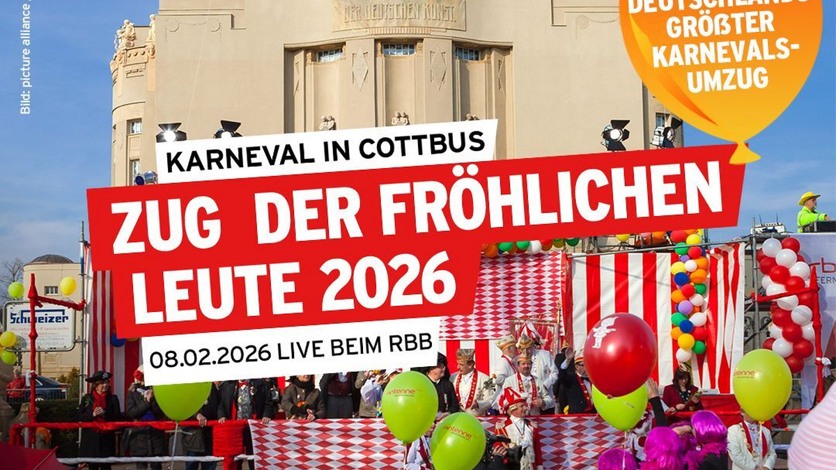 Ostdeutschlands größter und fröhlichster Karnevalsumzug startet um 13.11 Uhr und zieht dann durch die Innenstadt Richtung Staatstheater Cottbus Der Eintritt ist frei