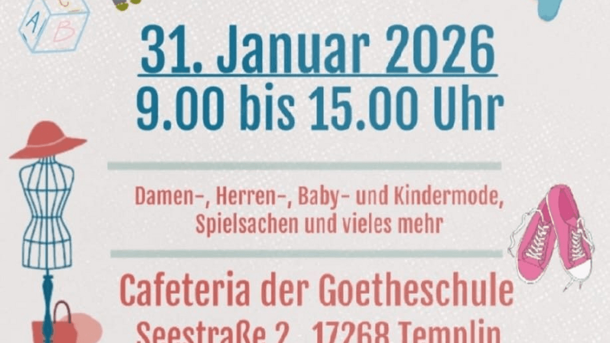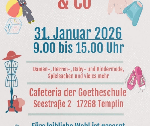 Kleiderbörse und Co... Kleidung für Damen, Herren und Kinder, Spielzeug in der Cafeteria der Goetheschule in Templin. Fürs leibliche Wohl ist gesorgt!
