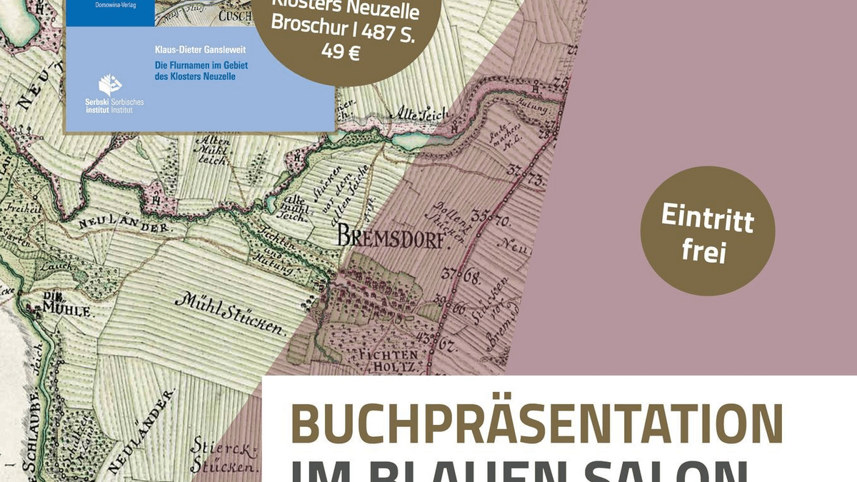 Buchpräsentation: Flurnamen rund um das Kloster Neuzelle Der Domowina-Verlag lädt zusammen mit der Stiftung Stift Neuzelle zur Vorstellung eines besonderen Grundlagenwerks ein: In einer umfangreichen Flurnamensammlung hat Dr. Klaus-Dieter Gansleweit über 6.000 Flurnamen aus dem Gebiet des ehemaligen Klosters Neuzelle zusammengetragen. Das Untersuchungsgebiet umfasst 37 Orte an mittlerer Oder und unterer Neiße. Neben überwiegend deutschen Flurnamen dokumentieren zahlreiche niedersorbische Bezeichnungen die bis ins frühe 18. Jahrhundert lebendige sorbische Sprache in der nordöstlichen Niederlausitz. Die Namen werden nach Ortschaften geordnet, mit historischen Belegen versehen und in Bedeutung sowie Wortherkunft erläutert. Eine fundierte Einführung und ein umfassendes Register machen das Buch zu einem unverzichtbaren Werk für flurnamenkundliche und lokalgeschichtliche Forschungen. Wir freuen uns auf Ihr Interesse an dieser spannenden Publikation zur Sprach- und Regionalgeschichte der Niederlausitz. Weitere Informationen: https://www.domowina-verlag.de/die-flurnamen-im-gebiet-des-klosters-neuzelle.html