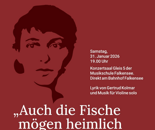 Unter dem Titel „Auch die Fische mögen heimlich träumen“, einer Zeile aus dem Gedicht „Aquarium“ von Gertrud Kolmar, lädt der emergo e.V. zu einer Lesung mit Konzert aus Anlass des Internationalen Tags zum Gedenken an die Opfer des Holocaust ein. Gertrud Kolmar gehört mit ihren sprach- und bildmächtigen Gedichten zu den bedeutendsten Stimmen der Lyrik im 20. Jahrhundert. Die Dichterin verbrachte einen wesentlichen Teil ihrer Schaffensjahre in Falkensee-Finkenkrug. 1943 wurde sie nach Auschwitz deportiert und dort ermordet. Ausgewählte Gedichte werden von dem Schauspieler und Sprecher Frank Röth, bekannt aus zahlreichen Film- und Fernsehproduktionen, vorgetragen. Einen besonderen Widerhall finden diese Gedichte in Werken für Violine solo, vorgetragen von dem Stuttgarter Geiger Robert Rülke. Dabei liegt ein Schwerpunkt auf der Musik von Komponist innen mit jüdischem Hintergrund.