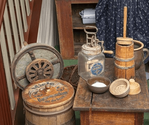 Butter selbst hergestellt – ein Angebot für Familien mit Kindern und Einzelgäste. Früher stellten die Bäuerinnen aus dem Rahm der Milch selbst ihre Butter her und verkauften diese auf den Cottbuser Märkten. Wer es selbst einmal ausprobieren möchte, wie man Butter mit einfachen Mitteln selbst herstellen kann, ist im Museum gern gesehen. Dazu gibt es viele, kleine Hintergrundinformationen zur Landwirtschaft in früherer Zeit. Wenn die Butter frisch geschlagen ist, darf jeder seine eigene Butter mit frischem Brot genüsslich kosten. Weitere Informationen: Heimatmuseum Dissen