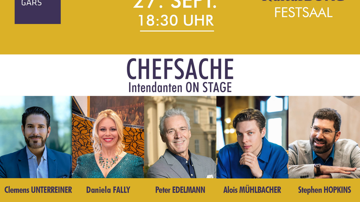 CLEMENS UNTERREINER lädt seine singenden Intendantenfreunde aus Niederösterreich zum großen Saison Abschlusskonzert nach Gars! PETER EDELMANN, DANIELA FALLY und ALOIS MÜHLBACHER singen mit ihm die schönsten Arien, Lieder, Duette und unvergessliche Evergreens aus aller Welt. Am Klavier: Staatsopernpianist STEPHEN HOPKINS.