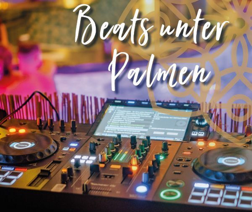Jeden 3\. Donnerstag im Monat schwingen von 18.00 bis 21.00 Uhr entspannte Beats von wechselnden Dj`s durch unsere Thermenwelt . Lasst den Feierabend bei Organic House Music und kühlen Drinks unter Palmen an unserer Poolbar ausklingen und genießt diese kleine Auszeit. Entspannte Beats, warmes Wasser und Palmenfeeling: Bei Beats unter Palmen sorgt Matthias Liesegang von 18 bis 21 Uhr für den passenden Soundtrack in unserer Thermenwelt. Freuen Sie sich auf lässige Organic House Music und Chill-Beats, die zum Treibenlassen, Abschalten und Genießen einladen. Perfekt für einen entspannten Feierabend unter Palmen. Ort: Thermenwelt | Uhrzeit: 18:00 - 21:00 Uhr Weitere Informationen: Event Infos