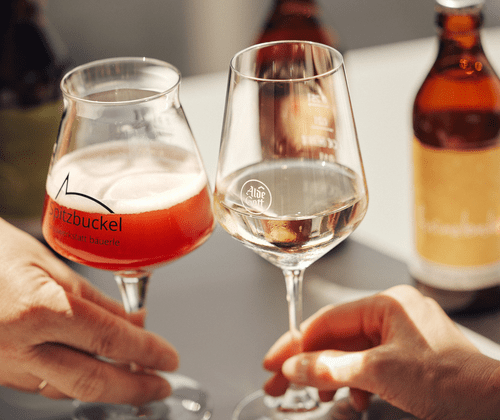 "Bier auf Wein, das lass sein - Wein auf Bier, das rat ich dir" Es erwartet Sie ein spannender Abend mit unerwarteten Kombinationen. Genießen Sie überraschende und unglaublich faszinierende Kombinationen und überzeugen Sie sich davon, dass Wein & Bier in der direkten Gegenüberstellung perfekte Partner sein können. > 4 auserwählte Weine > 5 hervorragende Biere > Brot > Mineralwasser > Dauer ca. 3 Stunden Unsere Brauwerkstatt liegt am Ende des Laufbachtals im Laufer Ortsteil Glashütte. Sanft eingebunden in die Tallandschaft des Nordschwarzwaldes, in unmittelbarer Nähe zum Stausee, am Fuße des Spitzbuckels. Hier am Spitzbuckel entspringt auch die Spitzbuckelquelle, deren weiches Gebirgsquellwasser die optimale Grundlage für unsere genussvollen Biere ist. Unter weiterer Verwendung von hochwertigsten Rohstoffen, brauen wir handwerklich traditionelle Biere nach dem deutschen Reinheitsgebot von 1516. Wir verwenden Malze aus der Region und hochwertigen Hopfen. Gleichzeitig legen wir großen Wert auf die verwendeten Hefekulturen. Nach der Hauptgärung werden unsere Biere ungefiltert abgefüllt. Nun erfolgt die zweite Gärung als Flaschengärung. So wird jede Flasche zum Unikat. Vor dem Genuss erhält jedes Bier eine lange Reifezeit, um zu einem besonderen Geschmackserlebnis zu werden.