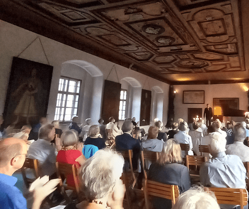 Der Hörgenuss wird durch das stimmungsvolle Ambiente der Anlage und – wie bei allen Konzerten der Serie – durch Kerzenbeleuchtung unterstützt.