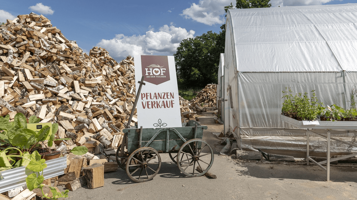 Wir verkaufen selbstgezogene  Blumen, Kräuter, Beerensträucher und Gemüsepflanzen aus dem Gewächshaus . Unsere Hof-Team ist vor Ort und berät Dich gern zu allen Pflanzen – von bekannten bis hin zu exotischen Sorten. Es lohnt sich, unser Angebot ist vielfältig! Außerdem lässt sich der Besuch perfekt verbinden mit einem Abstecher in unser gemütliches  Hofcafé  und zu den Ställen mit den frisch geborenen Jungtieren. Ein Erlebnis für die ganze Familie!