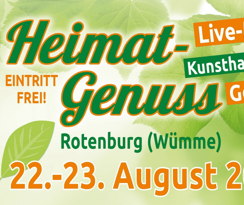 Unter dem Motto "Ein Ort - zwei Festivals" feiern wir dieses Jahr zusammen mit dem VÖLLIG LOSGELÖST FESTIVAL der Heilpädagogischen Kinder- und Jugendhilfe Rotenburg e. V. insgesamt drei Tage. 21. August VÖLLIG LOSGELÖST FESTIVAL 22. August VÖLLIG LOSGELÖST FESTIVAL & HeimatGenuss 23. August HeimatGenuss 5. HeimatGenuss mit Live-Musik, Genuss-Markt, Kunsthandwerk & Mitmach-Aktionen Die bunte Mischung aus Live-Musik, Kunsthandwerk, Genuss-Markt und Mitmach-Aktionen feiert sein 5-jähriges Jubiläum: Am Samstag, 22. August 2026, von 14 bis 22 Uhr und am Sonntag, 23. August 2026, von 11 bis 17 Uhr, verwandelt sich das 20.000 m² große Parkgelände des Heimathauses in eine lebendige Bühne für die ganze Familie. Der Eintritt ist frei. Alle Infos:  www.heimatgenuss-row.de