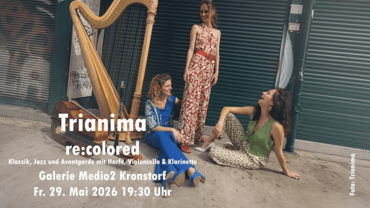 Das Programm „re:colored“ ist eine klangliche Auseinandersetzung mit Farbe, Emotion und Kontrasten. Mit Harfe, Klarinette und Cello – einer ungewöhnlichen, farbenreichen Besetzung – interpretieren TriAnima klassische und zeitgenössische Werke neu und arrangieren Bekanntes überraschend anders. Sie schlagen Brücken zwischen Klassik, Jazz und Moderne: Bekannte Werke wie „La La Land“ oder „In the Hall of the Mountain King“ erklingen in frischem Gewand. Eine besondere Rolle spielt Gilad Cohens Originalkomposition Trio for a Spry Clarinet, Weeping Cello, and Ruminating Harp, die das Programm klanglich erweitert. Den Kern bildet die Auftragskomposition von Fabio Devigilio: re:colored.Josef Heiml HalleBeginn 19:30 Uhr