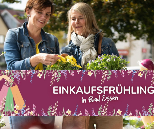 Der Frühling kommt und mit ihm der  Bad Essener Einkaufsfrühling ! Am  Sonntag, den 15. März 2026 , lädt die Bad Essener Innenstadt ab  14:00 Uhr  zum gemütlichen  Bummeln, Staunen und Genießen  ein. Verkaufsoffener Sonntag & roter Teppich Die teilnehmenden Geschäfte rollen den  roten Teppich  aus und heißen Sie herzlich willkommen. In den Läden erwarten Sie frühlingshafte  Aktionen, tolle Angebote  und ein besonderes Einkaufserlebnis in entspannter Atmosphäre. Blumiges Dankeschön für Besucherinnen und Besucher In vielen teilnehmenden Geschäften erhalten Sie eine Primel als  kleinen   Frühlingsgruß,  ein herzliches Dankeschön an alle, die den Einkaufsfrühling durch ihren Besuch zu etwas Besonderem machen. Mode, Schmuck & Geschenkartikel Entdecken Sie die neuesten  Frühlingskollektionen , funkelnde  Schmucktrends  und liebevoll ausgewählte  Geschenkideen . Auch ein  Reisebus  steht zur Besichtigung bereit – buchen Sie doch die passende Reise gleich an Ort und Stelle dazu! Ganz gleich, ob Sie nach Inspiration suchen oder einfach nur entspannt durch die  Fußgängerzone  flanieren möchten, in Bad Essen finden Sie das Passende. Oldtimertreffen & Fahrzeug-Highlights Ein besonderes Highlight ist das  2.   Oldtimertreffen : Zahlreiche historische Fahrzeuge verwandeln die City an verschiedenen Standorten in ein rollendes Museum. Bewundern Sie liebevoll gepflegte Klassiker und tauschen Sie sich mit den Fahrerinnen und Fahrern aus. Ein Tag für die ganze Familie Genießen Sie den Einkaufsfrühling in geselliger Atmosphäre, mit tollen Angeboten, Leckereien und jeder Menge Frühlingslaune. Ort:  Innenstadt / Fußgängerzone Bad Essen Zeit:  Sonntag, 15. März 2026, ab 14:00 Uhr Kommen Sie vorbei, flanieren Sie über den roten Teppich, entdecken Sie Neues und erleben Sie den Frühling in Bad Essen. Charmant, lebendig und herzlich!