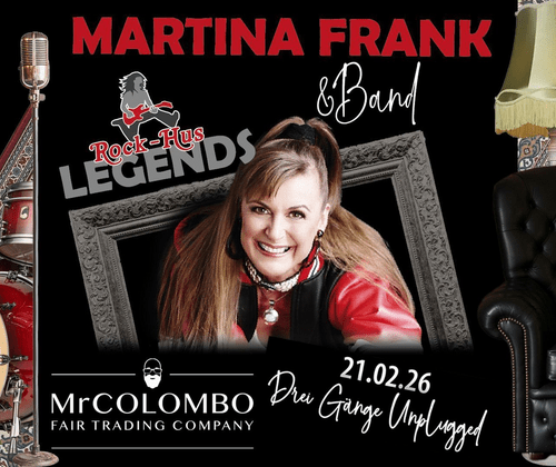 Das erste ROCK-HUS Legends - 3 Gänge Unplugged mit Martina Frank & Band am 21. Februar 2026 im Glaspalaise der Strandterrassen Steinhude. Das ist mehr als nur ein Konzert – es ist das Premium-Event für alle Sinne. Solo-Debütalbums "ROUGH DIAMONDS" (2022, Frankengestein Records), von Gastgitarrist Helge Engelke (Fair Warning, ex-Dreamtide) unterstützt. Auftritt bei "The Voice of Germany". Legendäre Sängerin und Songwriterin mit diversen Bandprojekten. Zusammenarbeit mit u.a.: Rick Altzi (Masterplan, Thunderstone) und Schlagzeuger Kevin Kott (ex-Masterplan). Ehefrau, Texterin und Co-Komponistin des Gitarristen und Produzenten Herman Frank, einer deutschen Metal-Legende (Sinner, Accept, Victory, Moon'Doc, ...) Diese Stationen und Verbindungen machen Martina Frank zu einer authentischen und respektierten Stimme, die tief in der deutschen Rocktradition verwurzelt ist. Ein intimes, akustisches Unplugged-Konzert der großartigen Martina Frank (https://open.spotify.com/intl-de/album/4JV0lVyJQa7SATYx6nWHI0) im eleganten Glaspalais direkt am Steinhuder Meer. Ein exklusives 3-Gänge-Menü, verfeinert mit den Bio-Gewürzen von Mr. Colombo aus Sri Lanka. (https://mrcolombo.de) Das ideale Geschenk für Musikliebhaber, Genießer und alle, die etwas Besonderes verdienen. Einfach das E-Ticket bei Eventim kaufen, ausdrucken oder digital weiterleiten – und die Vorfreude ist garantiert! Jetzt sichern unter: https://www.eventim-light.com/.../e/693c42c8e3975d4e3b77bff2 Seid dabei, wenn wir Geschichte schreiben!