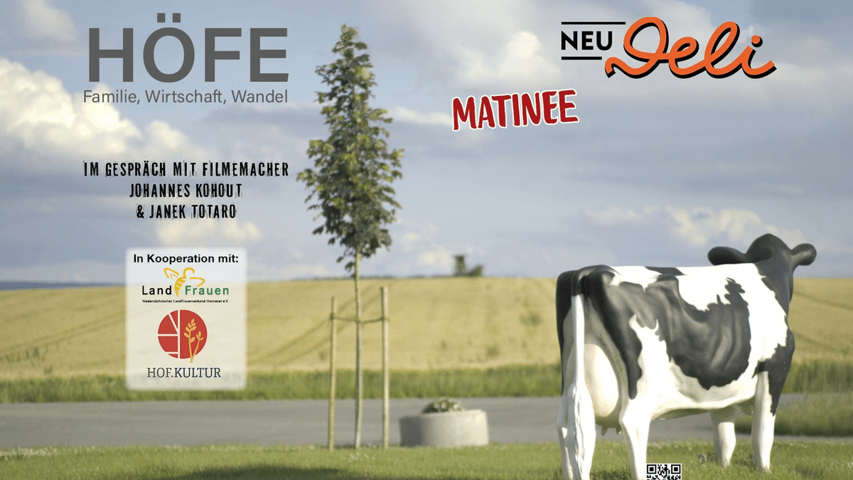 FSK 0 | Dokumentarfilm | Matinee am Sonntag | Kooperation mit den Landfrauen und Hof.Kultur-Dassel e.V. Beide Filmemacher (Johannes Kohout & Janek Totaro) sind persönlich vor Ort und geben eine Einführung in den Film. Im Anschluss sind eine gemeinsame Diskussion sowie frisch zubereitete Waffeln geplant. Die Moderation der Veranstaltung übernimmt Inge Cramm. „Viel wird gesprochen über die Landwirtschaft. Darüber, was sie ist, leisten muss, einmal werden soll. Doch was zeigt sich, wenn man nicht fordert, sondern zuhört? Der Film „Höfe – Familie, Wirtschaft, Wandel“ begleitet vier landwirtschaftliche Höfe in Niedersachsen – zwei Milchviehbetriebe und zwei Schweinehöfe, ökologisch wie konventionell, groß wie klein. Er folgt ihrer alltäglichen Arbeit: Routinen im Stall, Entscheidungen im Büro, Gespräche im Betrieb. Um sie herum versammeln sich Stimmen aus Wissenschaft, Politik und Beratung – ein Echo dessen, was von außen an sie herantritt. Der Film vermeidet die großen Fragen zur Zukunft der Landwirtschaft und gibt doch Antworten. Denn zwischen familiärer Verantwortung, wirtschaftlichem Druck und gesellschaftlichen Forderungen zeigen sich in leisen Zwischentönen die Umrisse eines stetigen Veränderungsprozesses. Ein dokumentarisches Porträt über landwirtschaftliche Arbeit als Spiegel einer Branche – und über Betriebe, die täglich produzieren, was wir täglich konsumieren.“ In Kooperation mit dem Verbund Transformationsforschung agrar Niedersachsen mit: Verbund Transformationsforschung agrar, BMEL Nds., Department für Nutztierwissenschaften Göttingen, Landwirtschaftskammer Nds. und diversen landwirtschaftlichen Produktionsbetrieben