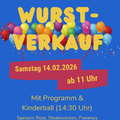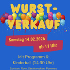 Der Musikverein Hausen i.K. lädt ein zum Wurstverkauf. Mit Programm & Kinderball (14:30 Uhr). Speisen: Rote, Steakwecken, Pommes.