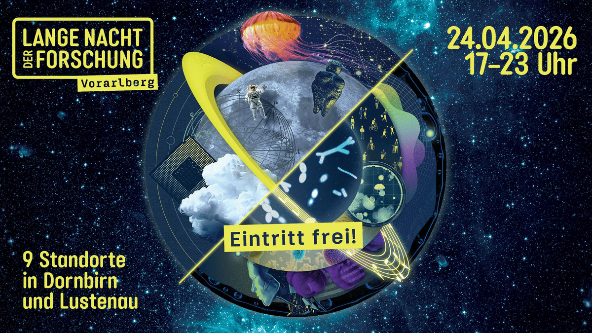 Die Lange Nacht der Forschung findet am 24. April 2026 von 17 bis 23 Uhr statt. Sie bietet:• 9 Standorte in Dornbirn und Lustenau• Stationen mit Wissenschaft, Forschung und Technik zum Mitmachen• Themen zum Staunen für jedes Alter• Eintritt, Shuttlebusse und ÖPNV-Anreise kostenfrei