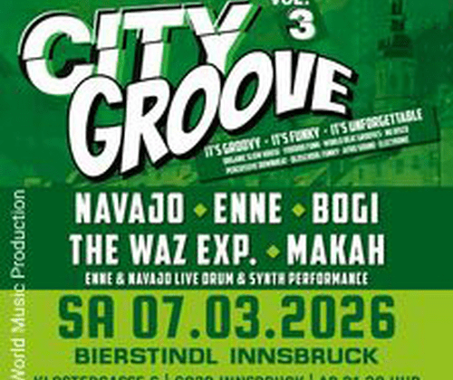 City Groove Vol. 3 bringt frische Sounds und pulsierende Rhythmen zurück ins Bierstindl Innsbruck. Die dritte Ausgabe der Reihe steht ganz im Zeichen von Nu Funk, Afro Grooves und elektronischer Musik, die gleichermaßen tanzbar, tiefgehend und genreübergreifend ist.