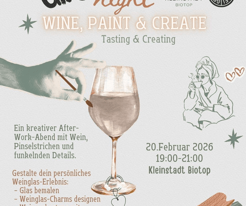 Wir bemalen ein Weinglas, gestalten Weinglas-Charms und genießen eine begleitete Weinverkostung mit ausgewählten Weinen von der Genusskramerei.Dazu gute Gespräche, Musik und diese besondere Mädelsabend-Energie