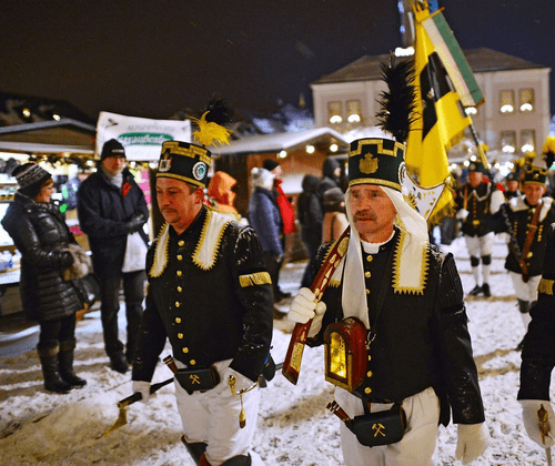 Das Schneeberger Lichtelfest ist nicht nur ein Besuchermagnet, sondern auch für Einheimische jedes Jahr und immer wieder ein beeindruckendes Erlebnis. Am Samstag vor dem 2. Advent findet traditionell der Bergaufzug mit der Bergbrüderschaft "Schneeberger Bergparade" und dem Musikkorps der Bergstadt Schneeberg statt. Am 2. Advent erleben Sie die große nächtliche Bergparade. Bergaufzug am Samstag: 17:30 Uhr Bergaufzug mit der Bergbrüderschaft Schneeberger Bergparade und dem Musikkorps der Bergstadt Schneeberg. Große nächtliche Bergparade am Sonntag: 16:30 Uhr Abmarsch der Bergparade in Schneeberg/ Neustädtel 17:00 Uhr Eintreffen der großen Bergparade im Zentrum 17:30 Uhr Großes Abschlußkonzert auf dem Marktplatz