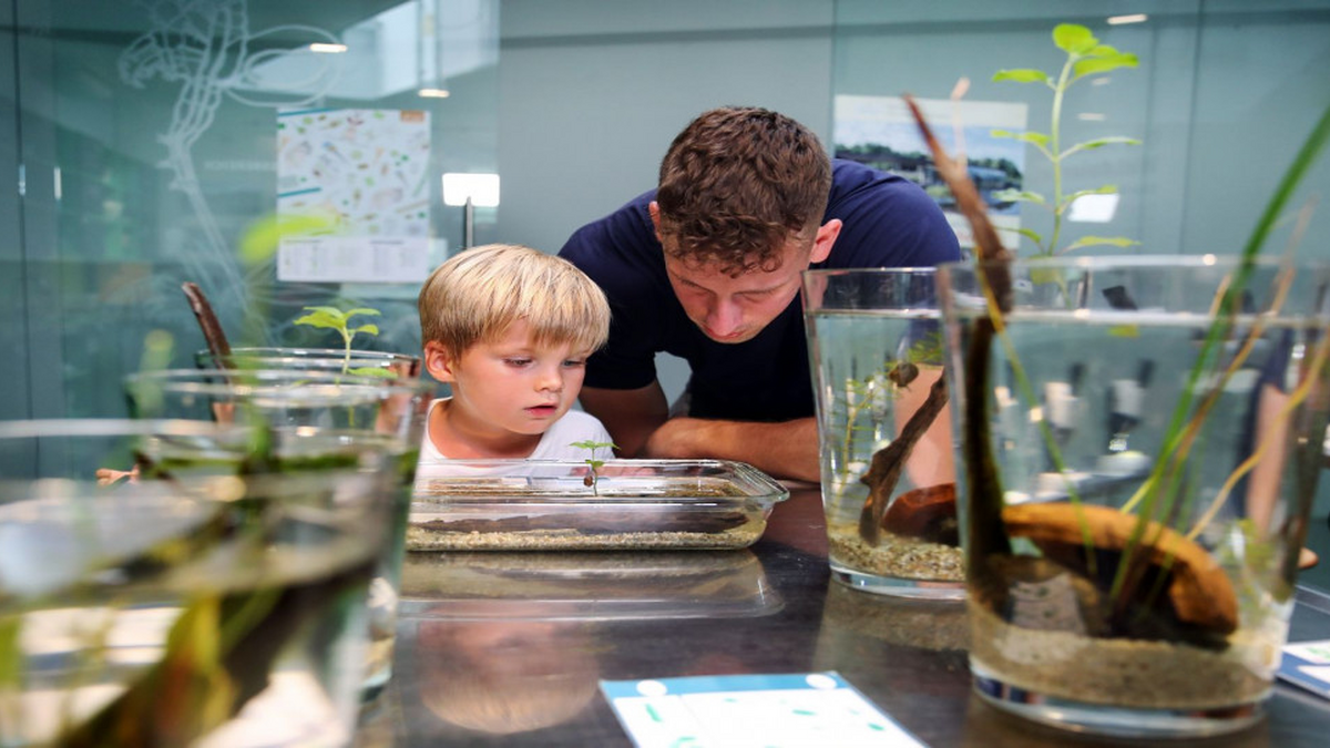Im Kinder-Sommerferienprogramm rund um das Thema Teich entdecken die Kinder die spannende Welt der Wasserlebewesen. Mit Kescher und Becherlupe werden kleine Tiere gefangen und anschließend bestimmt, anschließend geht’s ans Mikroskop, um die winzigen Wunder des Wassers ganz genau zu betrachten.