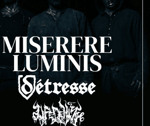 Gegründet in Québec und verwurzelt im kanadischen Black-Metal-Underground entstand Miserere Luminis als Kollaboration von Mitgliedern aus Gris und Sombres Forêts. Mit vielschichtigen Strukturen und instrumentaler Komplexität verbinden sie Elemente aus Black Metal, Neo-Klassik, progressivem Rock und weiteren Einflüssen. Ihre seltenen Auftritte lassen Sound, Atmosphäre und Präsenz zu einem geschlossenen Gesamterlebnis verschmelzen.