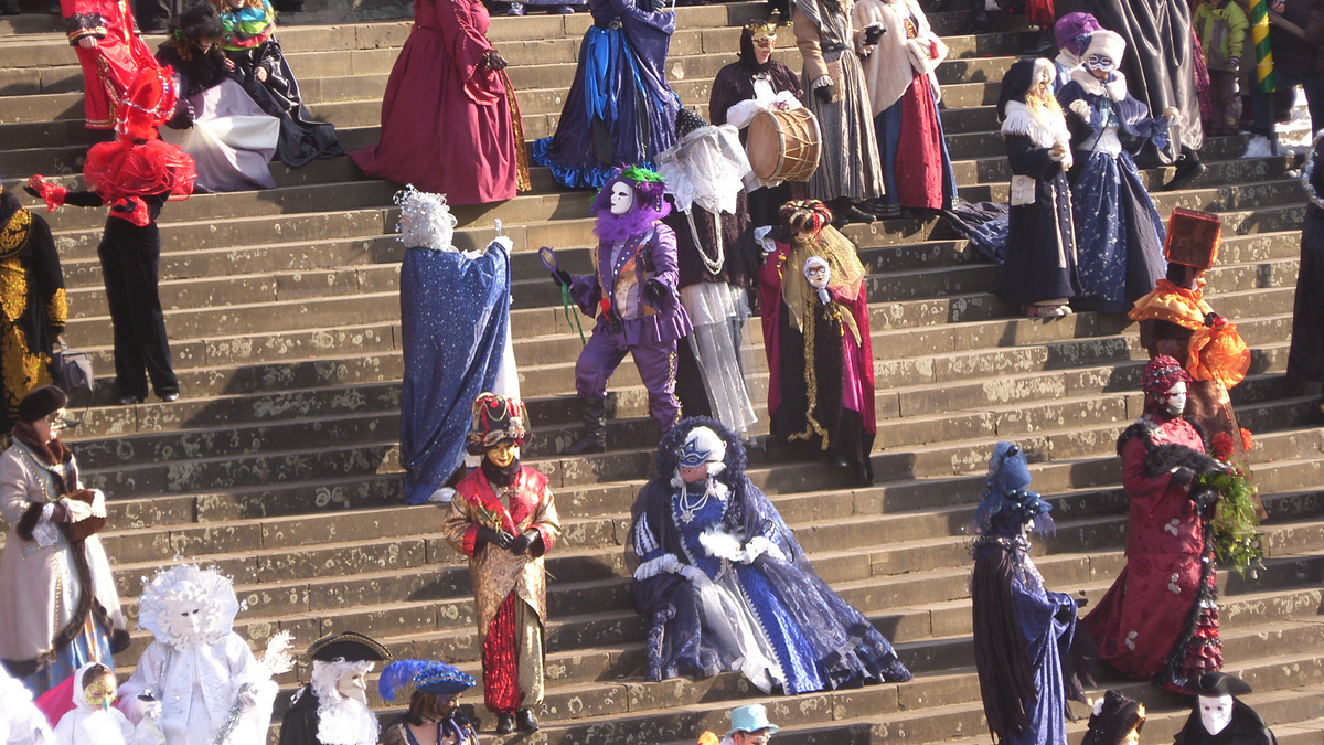 Karneval auf Schwäbisch Haller Art - Hallia Venezia ist die ruhige Karnevalsvariante aus der italienischen Stadt an der Lagune. Hallia Venezia - Karneval auf Schwäbisch Haller Art - ist ruhig und erhaben und lädt die Besucherinnen und Besucher zum Schlendern durch die engen Gassen und Plätze, zum Staunen und Entdecken immer neuer farbenfroher Masken und Gewänder ein. Am Sonntag, dem 23. Februar 2025 streifen ab 12:00 Uhr weit über 100 Maskenträgerinnen und Maskenträger in fantasievoll gestalteten Gewändern durch die Straßen der Altstadt und stellen sich auf dem Marktplatz, der Treppe von St. Michael und an vielen anderen Plätzen dem Publikum vor - ein farbenfrohes, stilles Fest der Sinne.