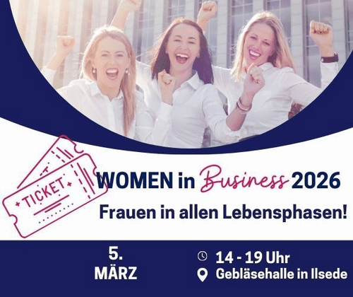 Am 5. März ist es wieder so weit: Wir laden euch herzlich zur 5. WOMEN in Business ein! Freut euch auf einen tollen Nachmittag voller Begegnungen, ehrlicher Einblicke und kraftvoller Impulse rund um das diesjährige Thema: ✨ Frauen in allen Lebensphasen ✨ Jede Lebensphase bringt eigene Fragen, Chancen und Herausforderungen mit sich – beruflich wie persönlich. Genau darüber wollen wir sprechen, voneinander lernen und uns gegenseitig stärken. Es erwarten dich ehrliche Gespräche, neue Perspektiven und wertvolle Impulse für deinen beruflichen und persönlichen Weg. Wann? 5. März, von 14:00 bis 19:00 Uhr (Einlass & Welcome ab 13:30 Uhr) Wo? Gebläsehalle Ilsede, Ilseder Hütte 14, 31241 Ilsede Darauf kannst du dich freuen: Inspirierende Vorträge & Panels mit starken Frauen aus der Praxis Networking & Austausch mit Unternehmerinnen und Entscheiderinnen Impulse & Workshops zu Karriere, Sichtbarkeit, Positionierung und Lebensphasen Pitch „Deine Bühne für 60 Sekunden“ ️ Get Together mit Snacks & Getränken Ob Berufseinstieg, Familienphase, Neuausrichtung oder erfahrene Businessfrau – jede Lebensphase bringt eigene Chancen mit sich. Genau darüber wollen wir sprechen, voneinander lernen und uns gegenseitig stärken. Das vollständige Programm findest du hier: https://eveeno.com/winb2026 ️ Ticketpreis: 25 Euro Die Plätze sind begrenzt – wir empfehlen eine frühzeitige Anmeldung. Bitte wähle bei der Buchung deine gewünschten Vorträge und Workshops aus. Wir freuen uns sehr darauf, dich bei der WOMEN in Business 2026 persönlich zu begrüßen!