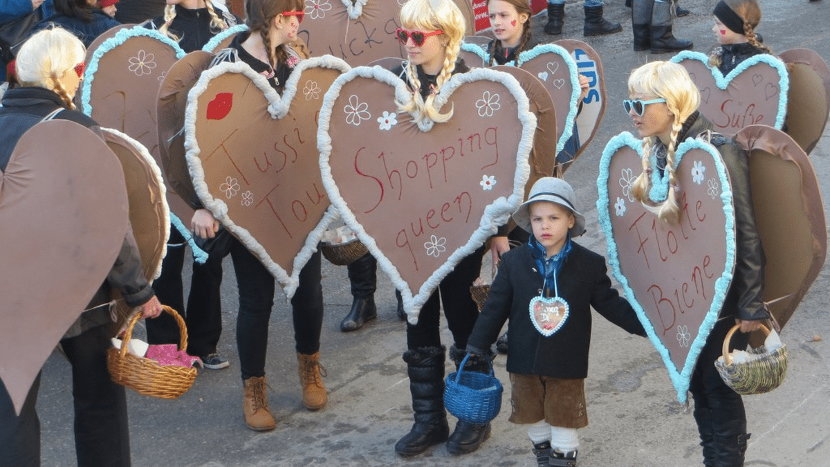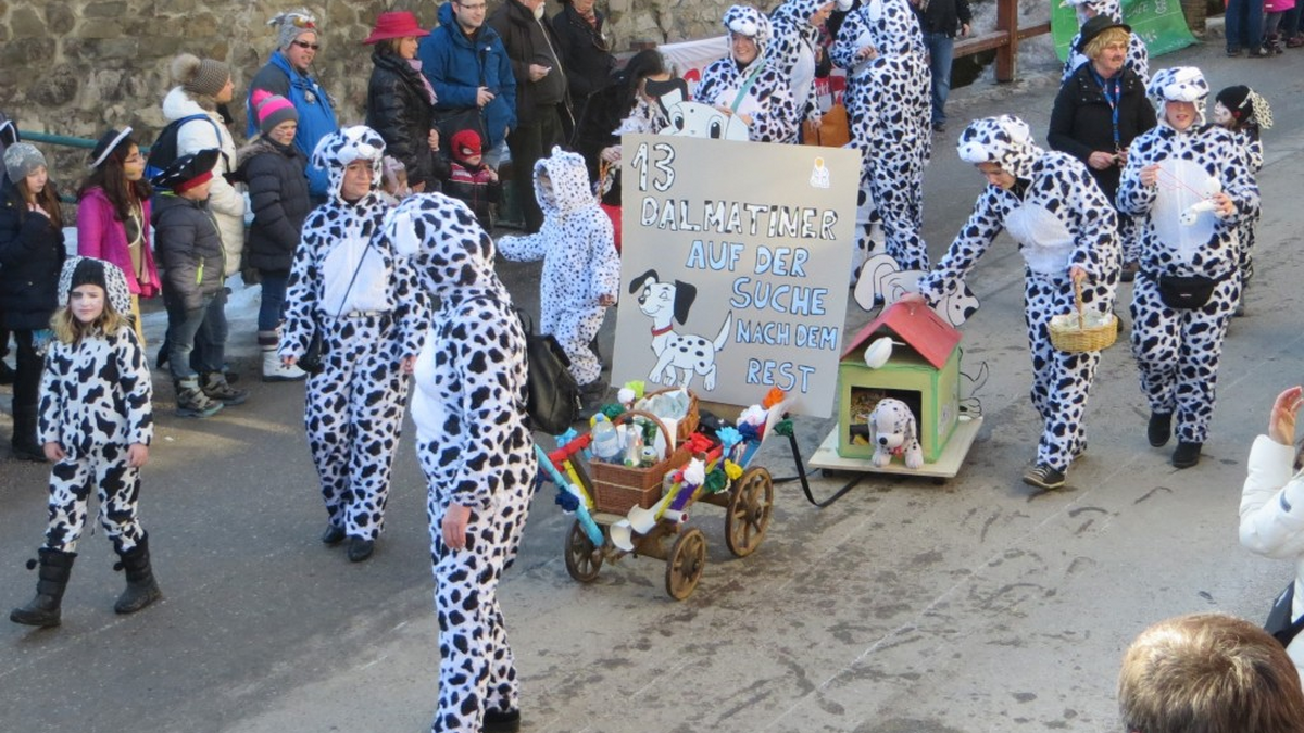 Beinah die ganze Dorfbevölkerung ist auf den Beinen um beim traditionellen Faschingsumzug dabei zu sein...
