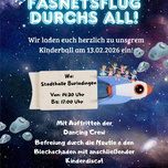 Fasnetsflug durchs All! Wir laden euch herzlich zu unserem Kinderball am 13.02.2026 ein! Mit Auftritten der Dancing Crew. Befreiung durch die Nautle & den Blechschaden mit anschließender Kinderdisco!