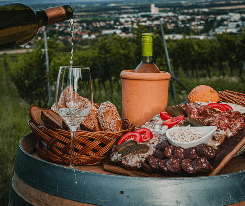 Idyllischer Frei-Luft Buschenschank am Rohrfeldteich, direkt am Thermenradweg gelegen. Wir verköstigen unsere Gäste mit vielfach prämierten Eigenbau-Qualitätsweinen aus der Region, sowie trad. Heurigenbroten und hausgemachten Aufstrichen. Kinderspielplatz und Parkplatz vorhanden. Ganzjähriger Weinversand und Ab-Hof Verkauf in der Kerngasse 6.