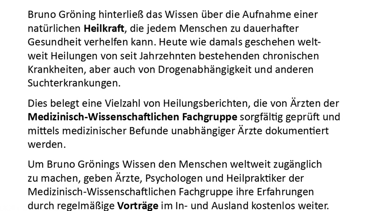 Informationsvortag "Es gibt kein Unheilbar" (Bruno Gröning)