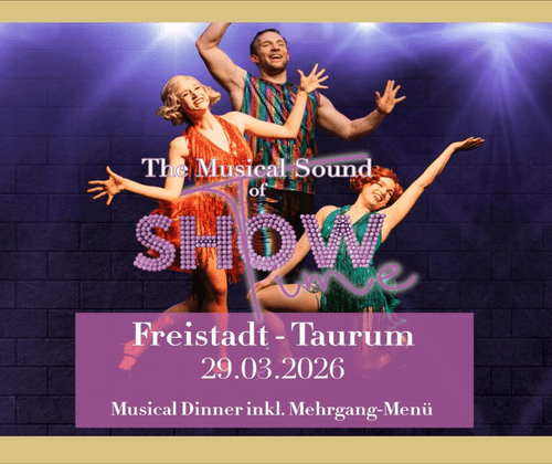 Musical Dinner Show – The Musical Sound of ShowtimeIt’s Showtime!Bühne frei für Gesang, Tanz, Show und große Gefühle mit den besten Songs von New York bis Hamburg, von London bis Wien.Unsere Künstler*innen präsentieren gekonnt schaurige Szenen aus der Vampirwelt, historische Momente aus „Mozart“, mitreißende Tanzchoreographien aus „Footlose“ u.v.m.So vielseitig wie das musikalische Programm des Abends ist, ist auch die hervorragende Küche des Gastgebers. Unsere Küchenchefs freuen sich darauf, Sie mit einem köstlichen, saisonalen Mehrgang-Menü verwöhnen zu können und den Abend perfekt abzurunden.Seien Sie unser Gast und überzeugen Sie sich selbst, denn there´s no Business like Showbusiness.Datum: 29.03.2026 | Beginn: 19:00 UhrPreis: 100,-ZUM TICKET–>
