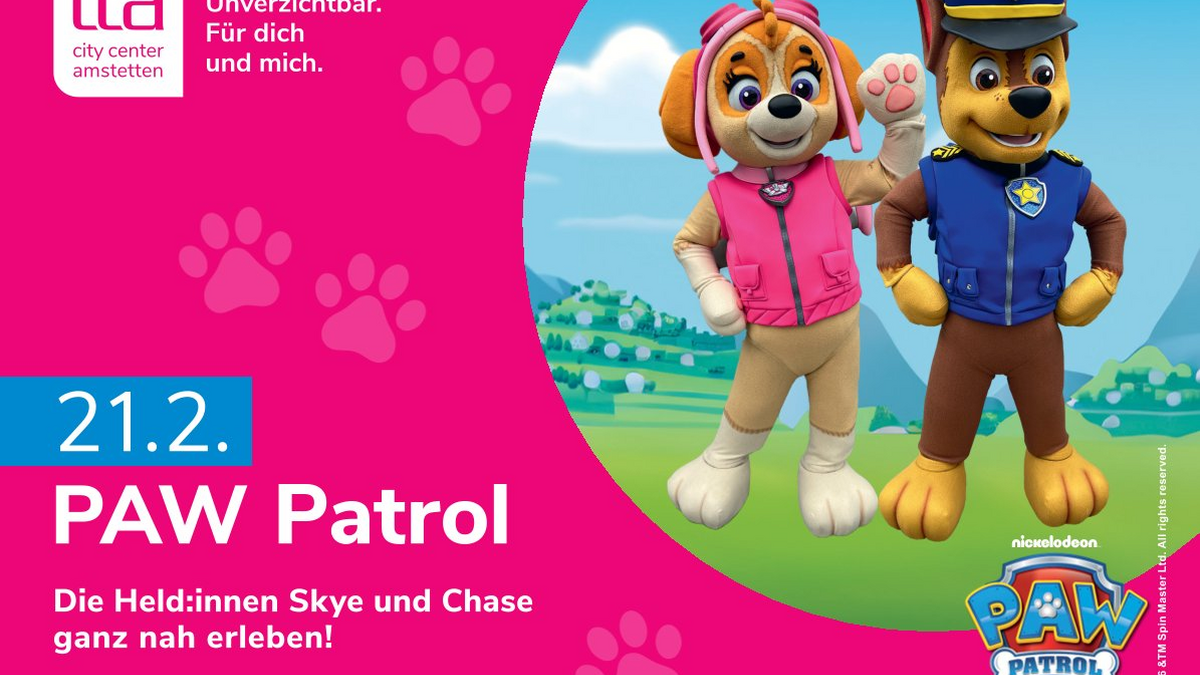 Von 10 bis 16 Uhr sorgen Skye & Chase von der PAW Patrol für strahlende Kinderaugen.