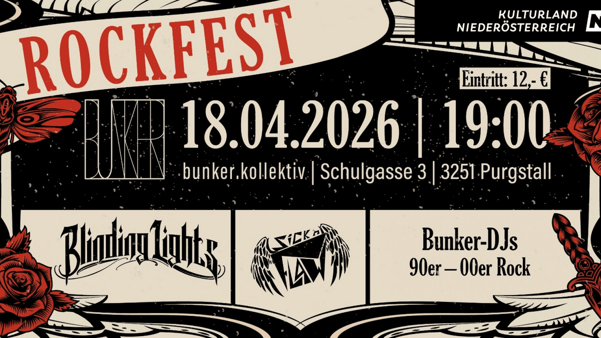 Am 18. April 2026 gibt’s im Bunker in Purgstall wieder ordentlich was auf die Ohren!