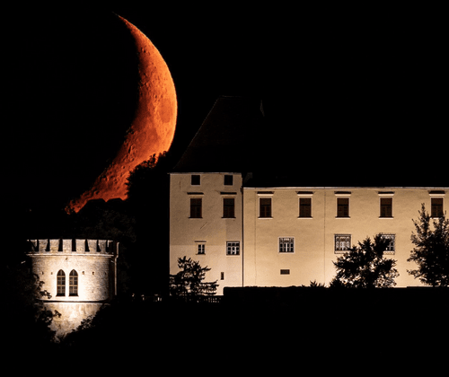 Erleben Sie eine Schlossführung der besonderen Art Wenn der Vollmond langsam hinter dem Oberschloss auftaucht und Schloss Seggau in silbernes Licht hüllt, beginnt eine ganz besondere Führung. Besichtigen Sie die wunderschönen Fürstenzimmer und die historischen Kapellen und erleben die Magie des Schlosses bei Nacht. Mit Laternen in der Hand erkunden wir das Schlossareal und bewundern das mystische Erscheinen des Vollmondes auf der Glockenwiese.